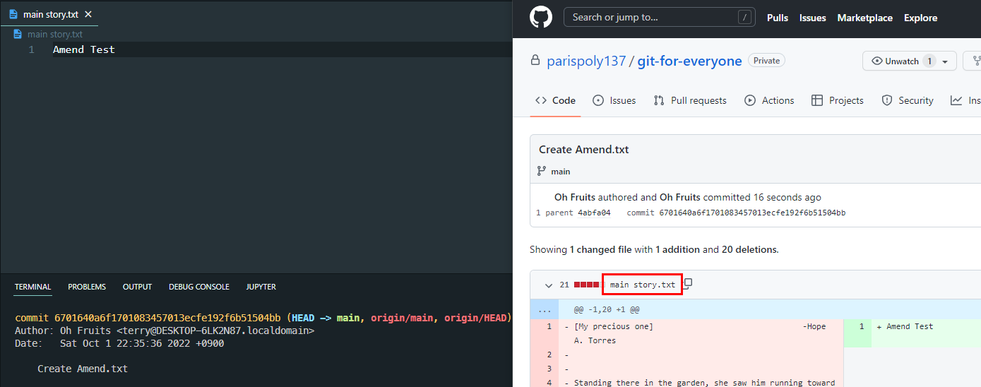그런데 파일명을 main story.txt에서 amend.txt로 바꾸려 했는데, 깜빡했다.