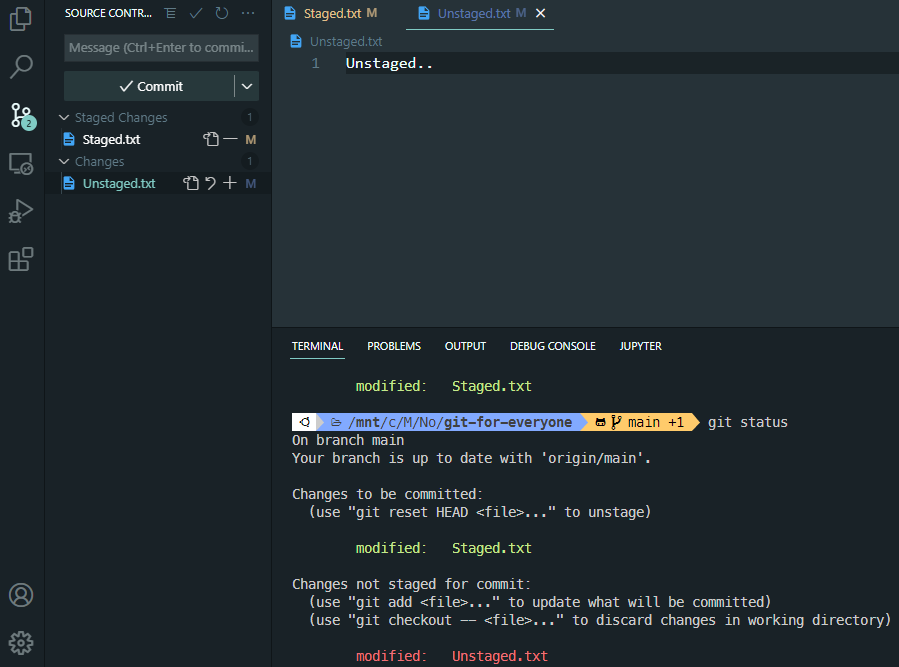 >>> 현재 작업 중인 파일의 상태를 알 수 있는 코드이다. Staged와 Unstaged를 구분할 수 있다.