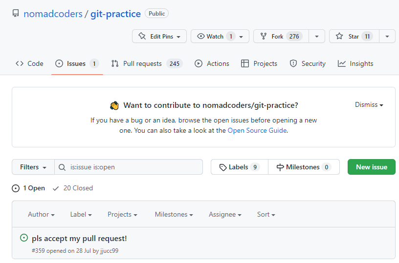 Pull request를 만들 때, "이 Pull request는 저 이슈를 해결하는 것" 이라고 하면 효율적이다.