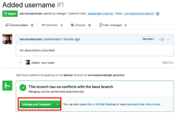 저장소의 주인은 이와 같은 Pull request의 내역을 확인하고, 원래의 저장소에 이를 merge할 것인지 결정할 수 있다.
