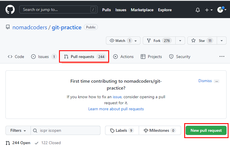 Pull Requests는 기존의 프로젝트에 내가 수정한 내역을 반영시켜달라고 요청하는 것이다.