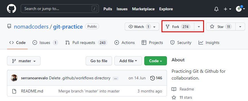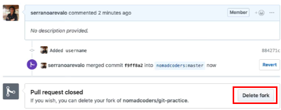 merge를 하면, 더이상 fork 저장소가 필요 없어지기 때문에 Delete fork 버튼이 생긴다.